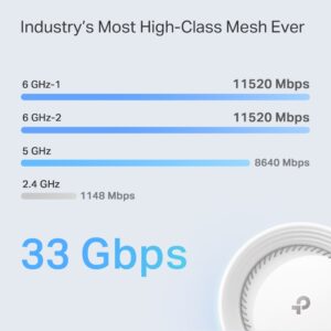 - 16-Stream 33 Gbps Quad-Band WiFi – 11520 Mbps (6 GHz-1) + 11520 Mbps (6 GHz-2) + 8640 Mbps (5 GHz) + 1148 Mbps (2.4 GHz).